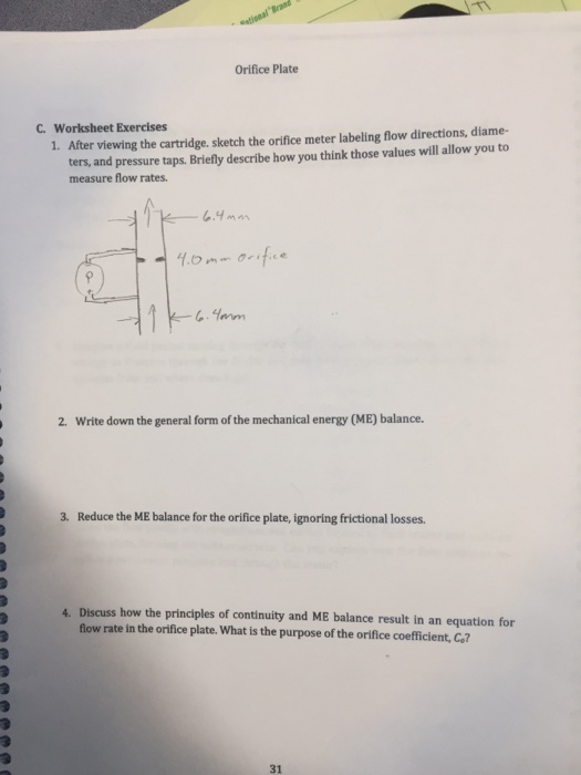 Solved Orifice Plate C Worksheet Exercises 1 After View Chegg Com